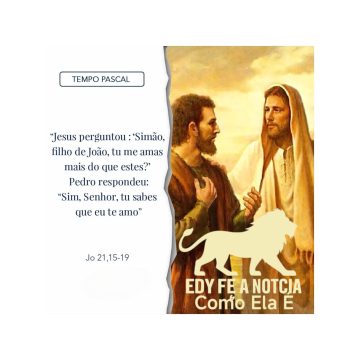 Jesus manifestou-se aos seus discípulos 15 e, depois de comerem, perguntou a Simão Pedro: "Simão, filho de João, tu me amas mais do que estes?" Pedro respondeu: "Sim, Senhor, tu sabes que eu te amo". Jesus disse: "Apascenta os meus cordeiros". 16 E disse de novo a Pedro: "Simão, filho de João, tu me amas?" Pedro disse: "Sim, Senhor, tu sabes que eu te amo". Jesus disse-lhe: "Apascenta as minhas ovelhas". 17 Pela terceira vez, perguntou a Pedro: "Simão, filho de João, tu me amas?" Pedro ficou triste, porque Jesus perguntou três vezes se ele o amava. Respondeu: "Senhor, tu sabes tudo; tu sabes que eu te amo". Jesus disse-lhe: "Apascenta as minhas ovelhas. 18 Em verdade, em verdade te digo: quando eras jovem, tu te cingias e ias para onde querias. Quando fores velho, estenderás as mãos e outro te cingirá e te levará para onde não queres ir". 19 Jesus disse isso, significando com que morte Pedro iria glorificar a Deus. E acrescentou: "Segue-me".